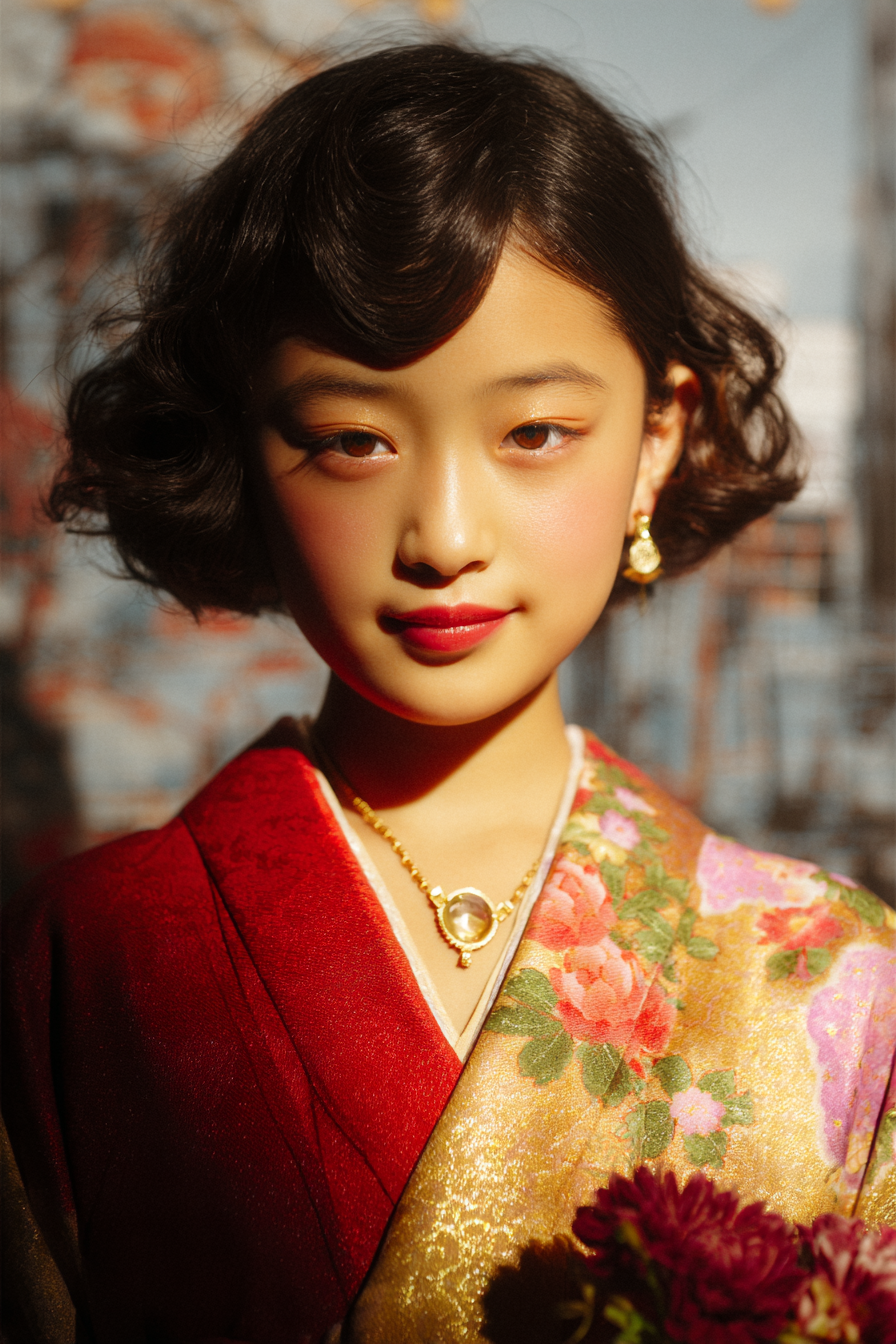 • Hair: Taishō-era–inspired hairstyle, neatly trimmed with gentle wave (canonical)