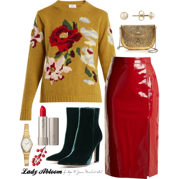 • Canonical Look: Reimagined archival style board, Lady Abloom: Floral Cashmere Sweater in Antique Gold, a strong, understated urban elegance grounded in realism