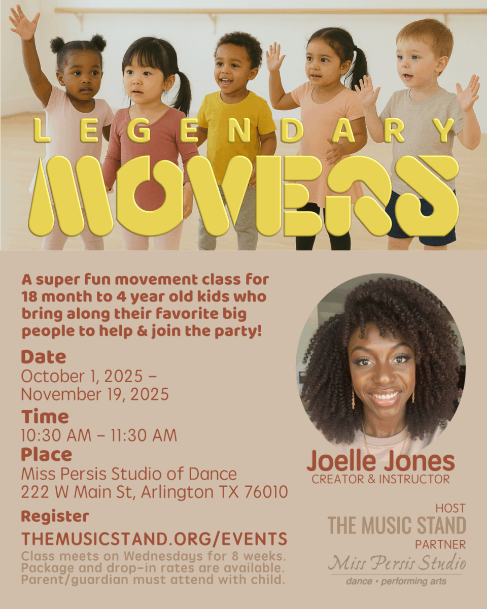 This class is a creative music education program hosted by The Music Stand in partnership with Joelle Jones and Miss Persis Studio of Dance.
